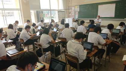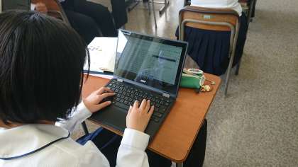 9月25日(土) 2年生「授業風景」その1 公開日 2021/09/25 更新日 2021/09/25 2年生 今日の2年1組は国語の授業です。クロムブックを利用し、メールを使って自分の好きな小説の説明文を作成し、教科担当の先生に送っていました。 普段、あまりメールを使って長文を作ることがない生徒達は、悪戦苦闘しながらも、自分の好きな本を紹介できるということで楽しそうに授業に取り組んでいました。