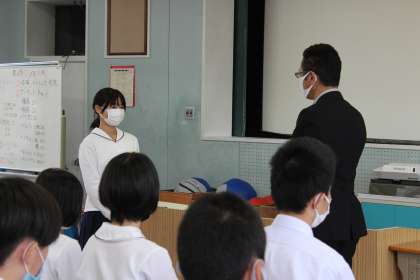 10月1日(金) 3年生「修学旅行 結団式」 公開日 2021/10/01 更新日 2021/10/01 3年生 いよいよ来週の月・火曜日に迫った修学旅行。 本日、結団式を行いました。 学年外の引率教員の紹介、生徒代表挨拶、校長からの言葉と続きました。 コロナが落ち着いてきているタイミングではありますが、引き続き感染対策には十分気を配りつつ、安全で楽しい、思い出に残る旅行にしていきたいと思います。