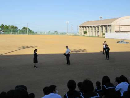 うきうきした気持ちを抑え、きちんとした態度で出発式に臨んでいました。