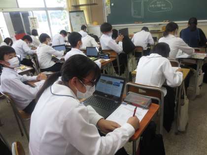 10月6日(水) 3年生「修学旅行を終えて」 公開日 2021/10/06 更新日 2021/10/06 3年生 午後から修学旅行のまとめを各自で行いました。思い出や学んだことを新聞にまとめながら、ホテルのウエルカムボードに寄せ書きをしました。卒業まで教室に飾ります。楽しい思い出を胸に、今日から学習中心の生活に切り替えですね。