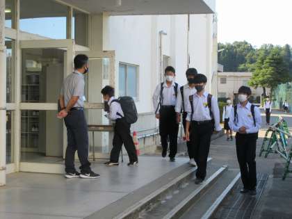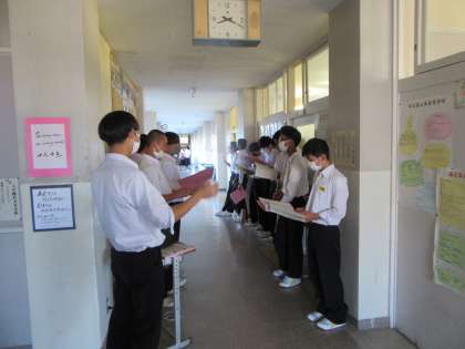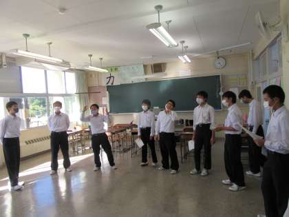 10月11日(月) 朝の様子 公開日 2021/10/11 更新日 2021/10/11 お知らせ※2024以前 おはようございます。 今日も10月とは思えない暑さになるという予報です。体調に気をつけたい時期です。 今朝から合唱の朝練習がスタートしました。パート練習で音を合わせています。