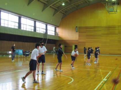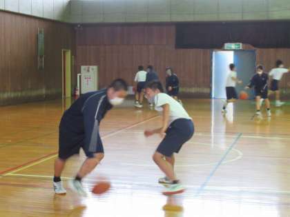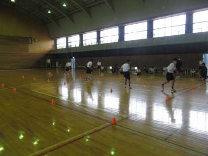 10月12日(火) 2学年 「2−1 授業の様子」 公開日 2021/10/12 更新日 2021/10/12 2年生 2年1組の体育の様子です。本日は雨天のため、社会体育館で活動しました。 ハンドボール上達に向けて、ボールをもって動く練習や細かく足を動かす練習に励んでいます。 写真は、バスケットボールを使ってのパスや、ドリブル、ドリブルしながらお互いのボールを取る様子や、後ろ向きになってコーンを交差して走っている様子です。