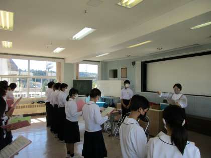 リーダーが全体の様子を見て、「もっと声量を出そう」といった必要なアドバイスを、学級全体に向けて返していました。