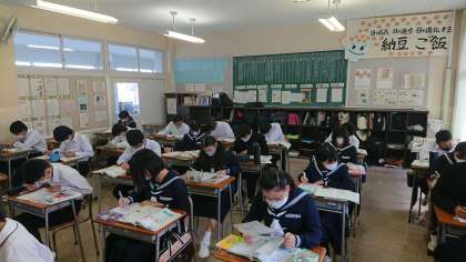 10月18日(月) 2年生「授業風景その1」 公開日 2021/10/18 更新日 2021/10/18 2年生 2年1組は、理科の授業です。 これまでに習った反射や神経について教科書を見ながらプリントで各自復習を行っています。