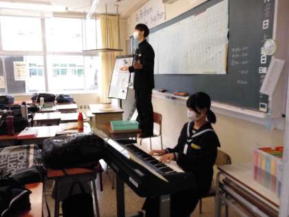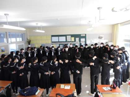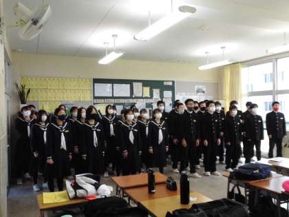 10月23日(土) 3年生「合唱コンクール当日、朝」 公開日 2021/10/23 更新日 2021/10/23 3年生 最後の練習に力が入ります。リーダーからの「これでこの曲をみんなで歌うのもあと一回です。心を一つにして歌いましょう」と呼びかけがあり、円陣を組んで、心を一つにして最後の練習を終えました。