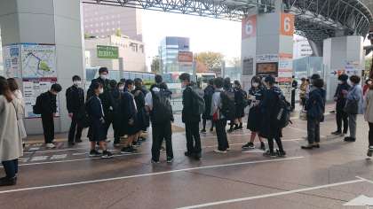 金沢駅からバスで目的地まで行きます。バス待ちです。