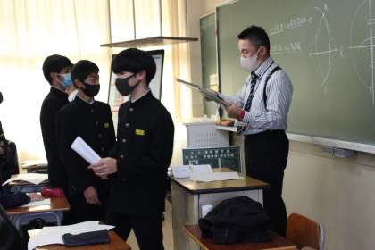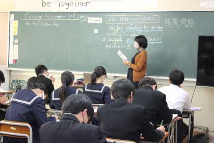 11月2日(火) 3年生「授業風景」 公開日 2021/11/02 更新日 2021/11/02 3年生 3限目、1組は英語で「名詞に情報を加えて説明する」後置修飾について学んでいます。 2組は先日行った実力テストが返され、見直しを行っていました。 3年生はテストが続きますが、分からなかった点を確認し、一つずつ克服していってほしいと思います。