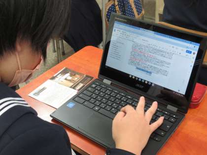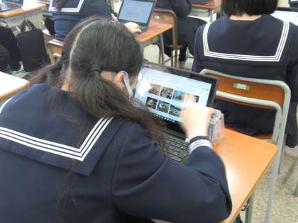 班のデジタルカメラで撮影した写真で思い出を振り返りながら写真を選ぶ姿も見られました。