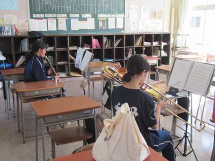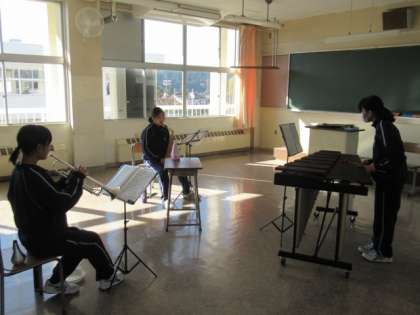 11月6日(土)部活動「アンサンブル・コンテストに向けて」 公開日 2021/11/06 更新日 2021/11/06 部活動 休日の校内に美しい音色が響いています。 1月に行われる「アンサンブル・コンテスト」に向けて、演奏の腕をみがいています。