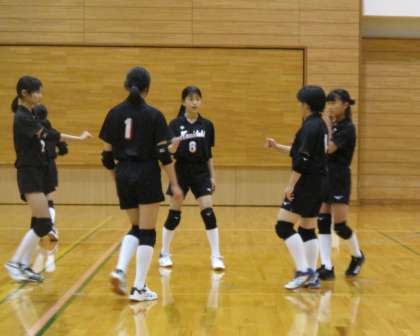 11月8日(月)バレーボール部「新人大会結果」 公開日 2021/11/08 更新日 2021/11/08 部活動 11月7日(日)に行われた、バレーボール部新人戦の結果を紹介します。 リーグ戦を行い、西部中学校に2−0、新庄中学校に0−2の1勝1敗でした。 残念ながら、決勝トーナメントに進むことはできませんでしたが、全員が勝利に向かい、1点でも多く点を取ろうと頑張っていました。