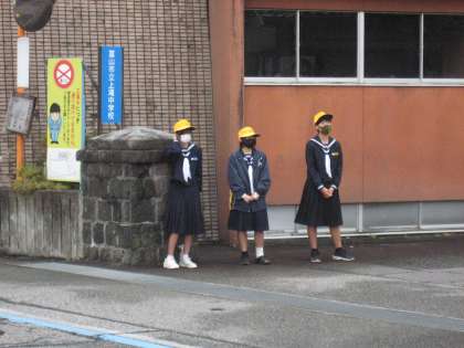 今朝は1組の安全委員が校門付近に立ち、呼びかけました。