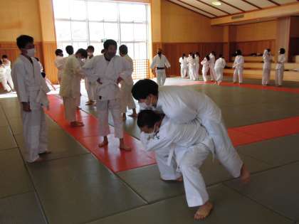 11月11日(木) 3年生「凜とした空気の中・・」 公開日 2021/11/11 更新日 2021/11/11 3年生 柔道の学習も進んできて、いよいよ「背負い投げ」の練習です。ちょっと緊張した雰囲気の中、お互いを信頼して男子も女子も挑戦しています。だんだんさまになってきています。