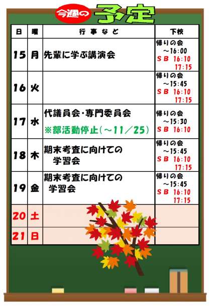 11月14日(日)「今週の予定」