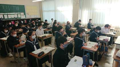 11月15日(月)2年生「授業風景その2」 公開日 2021/11/15 更新日 2021/11/15 2年生 2年2組は国語の授業です。 漢詩を学んでいます。古き中国の様子を漢詩の内容を紐解いて考えています。