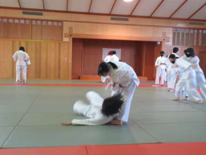 6限目、1組は体育で柔道です。背負い投げも様になってきています。