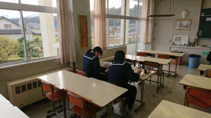 今日も生徒が美術室での朝学習に取り組んでいます。