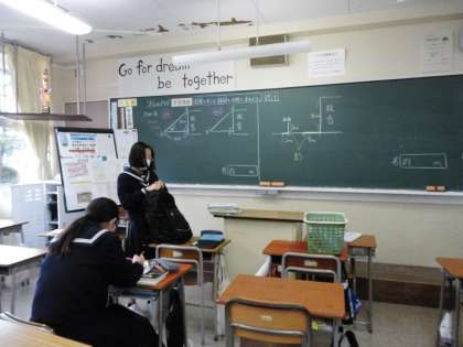1限が数学の日は、登校するとすでに授業の黒板が書かれています。数学の担当教員が早朝に今日の授業の準備をしているのです。