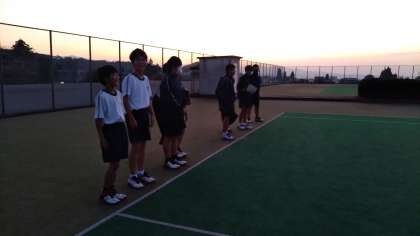 11月19日(金)ソフトテニス部「1年生大会に向け」 公開日 2021/11/20 更新日 2021/11/20 部活動 練習の片づけを済ませた後に、コートに大きな声で挨拶していました。 明日の大会に向け、気合い十分のようです。
