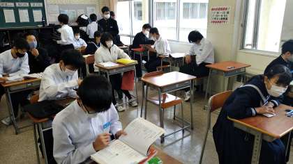 写真は上から、1組、2組、少人数教室の勉強会です。