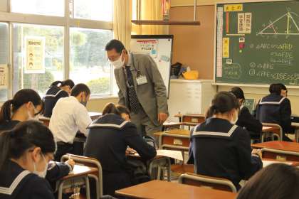 11月25日(木) 3年生「数学・自主学習会」 公開日 2021/11/25 更新日 2021/11/25 3年生 期末テストも明日の1日を残すのみとなりました。 数学のテストを前に、校長による自主学習会が本日も行われています。 教室いっぱいの参加者で、実力を上げたいという真剣さが伝わってきます。 勉強した分だけ、成果は出るものです。頑張ってくださいね。