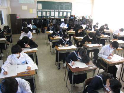 11月26日(金)1年生「期末考査風景」 公開日 2021/11/26 更新日 2021/11/26 1年生 最後の教科、英語の様子です。 これまでの疲れも見せずに、力を出し切ろうと集中して取り組んでいました。
