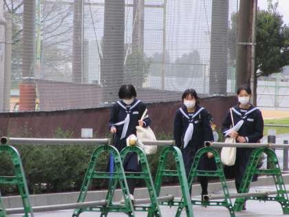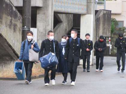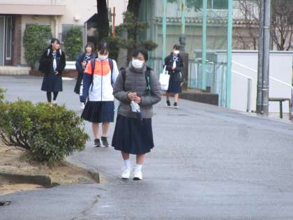12月2日(木) 登校風景 公開日 2021/12/02 更新日 2021/12/02 お知らせ※2024以前 おはようございます。 寒い朝です。山を見ると、低いところまで白くなってきました。上滝に雪が降るのも近そうです。 今朝も安全委員の人たちは、活動をがんばっています。