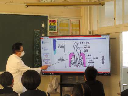 12月2日(木)1年生「学校保健委員会」 公開日 2021/12/02 更新日 2021/12/02 1年生 5限目は1年生を対象に学校保健委員会を開催し、3つの分科会に分かれてお話を聞きました。 第1分科会は学校歯科医の藤川先生による「歯と口の健康づくり」、第2分科会は学校薬剤師の藤川先生による「薬の正しい使い方」、第3分科会はスクールカウンセラーの伊東先生による「心の健康」についてのお話でした。 今日のお話から学んだことを、これからの健康生活の実践に生かしていってほしいです。