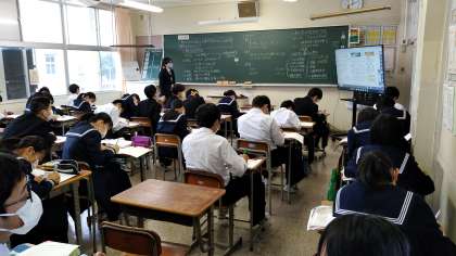 12月7日(火)1年生「授業の様子」 公開日 2021/12/08 更新日 2021/12/08 1年生 1組は数学で図の平行移動を作図していました。 2組は社会で南アメリカ州の特色について学習していました。