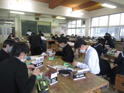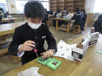 12月7日(火) 2学年 「2−1授業風景」 公開日 2021/12/08 更新日 2021/12/08 2年生 2年1組の技術の授業の様子です。 ものづくり「エネルギーの変換」の分野で、「ラジカセ」をつくっています。 手際よく、部品を組み合わせていました。また、分からないところは級友に質問し、製作を進めている様子も見られました。