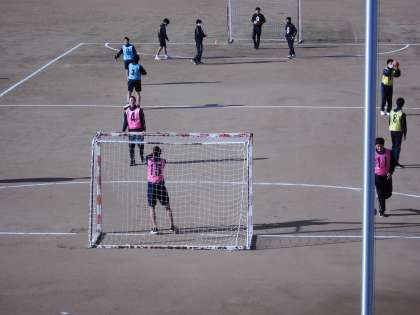 北陸の冬はなかなか外で保健体育ができません。久しぶりの晴天に、外でハンドボールをすることができました。3年生は、運動をする機会も減っているので、少し残っている水たまりも何のその、みんなとても張り切っています。