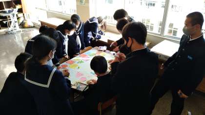 12月10日(金)1年生「旧校舎へメッセージ」 公開日 2021/12/10 更新日 2021/12/10 1年生 生徒会プロジェクトの「旧校舎へのありがとうメッセージ」に1年生も取り組みました。 代議委員からの呼びかけにたくさんの生徒が集まり協力してくれていました。