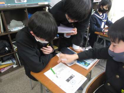 12月15日(水)3年生「それぞれの学習方法」 公開日 2021/12/15 更新日 2021/12/15 3年生 時間があればそれぞれが自分の学習に取り組みます。のぞいてみると、教え合い学習があちこちで見られます。ある人は、一度で正解した問題にシールが1個、間違えたところにも印のシールが貼ってあるようです。分かる人が質問してきた人に教えてあげるのも勉強です。教えてあげて始めて自分の力になります。もっともっとこんな場面が増えていってほしいです。
