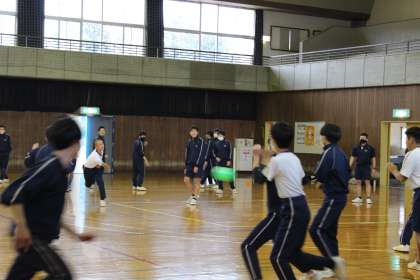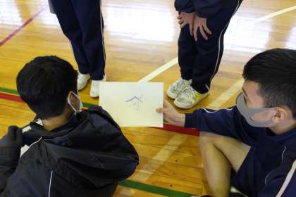 12月16日(木) 3年生「学年レクリエーション」 公開日 2021/12/16 更新日 2021/12/16 3年生 今日は、学年プログラム委員が企画し、学年レクリエーションを行いました。 「伝言ゲーム」と「ドッジボール」で、束の間、受検のプレッシャーから離れて楽しむことができたようです。 伝言ゲーム、お題は「黒部ダム」だったのですが、家の絵でしょうか? ドッジボールは男女に分かれ、思いっきり走り回っていました。男子も女子も鋭いボールが投げ込まれ、その度に悲鳴や歓声が上がっています。