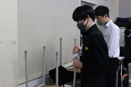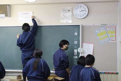 12月22日(水) 3年生「引っ越しに向けて」 公開日 2021/12/22 更新日 2021/12/22 3年生 いよいよ迫ってきた引っ越しに向けて、教室や廊下の掲示を外したり、いすや机の足を拭いたりしています。 引っ越しは大変ですが、3学期、新しい学校、新しい教室で気持ちよく、支障なく過ごせるよう、頑張っています。