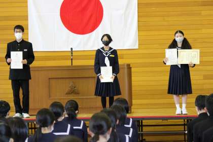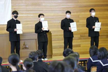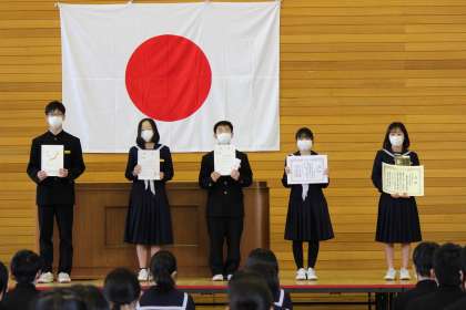 終業式に先立ち、2学期に活躍した皆さんの受賞披露式を行いました。