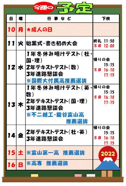 12/18( 木 ) ★保護者懇談会にお越しになる際に