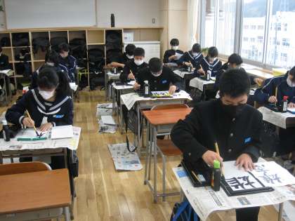 1月11日(火)1年生「書き初め大会」 公開日 2022/01/11 更新日 2022/01/11 1年生 3学期がスタートしました。 新春の行事は、書き初め大会です。 真剣な表情で、集中して取り組んでいました。