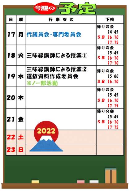 1月16日(日)「今週の予定」