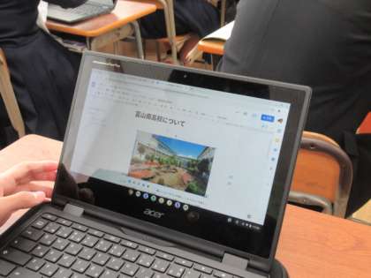 本日からは、「興味のある・目指している高校」を1校選んで、その魅力をクロムブックでまとめるという活動が始まりました。