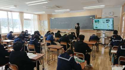 1月24日(月) 2年生「授業風景その1」 公開日 2022/01/24 更新日 2022/01/24 2年生 2年1組は社会の授業です。 工業地帯の特色について学習していました。工業の発展による様々な産業の変化についての内容です。