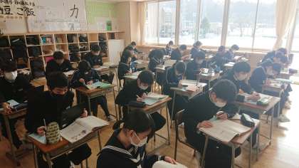 先日行った、発表に関してのまとめを行っています。クロムブックを利用し、分からないことを調べたり、発表内容を振り返ってみたりと前時の復習をしっかりと行っていました。
