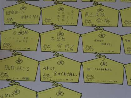 3年生の教室の後ろには、絵馬が貼ってあります。近づいてみると、やはり受験生の思いが伝わってきます。また、2年生のときに平和学習の一環でみんなで折った千羽鶴も、「合格祈願」としてクラスに飾ってあります。それぞれの思いがどうぞ実りますように。