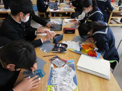 下絵を写したランプシェードの一部を切り抜き、カラーフィルムを貼る作業に苦戦しながらも、自分なりの工夫ができるところに楽しさを感じているようでした。