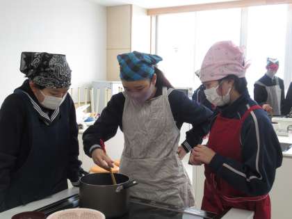 前回の蒸しパンづくりの経験を生かして、班で協力して手際よく活動していました。