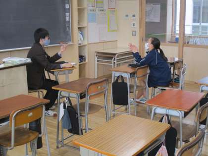 教育相談が続いています。普段は話さないことも担任の先生とじっくり、親密に語り合っています。