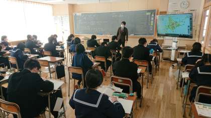 2月7日(月) 2年生「授業風景その1」 公開日 2022/02/07 更新日 2022/02/07 2年生 2年1組は社会の授業です。 北海道の各産業について学習していました。ジャガイモなどの農作物も豊かな北海道についてみんな真剣に内容を聞いていました。