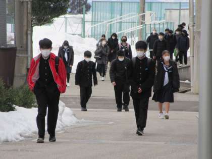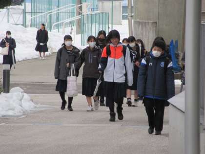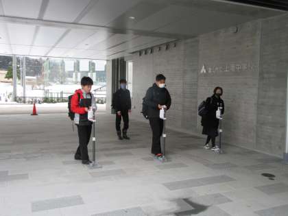 2月10日(木) 登校風景 公開日 2022/02/10 更新日 2022/02/10 お知らせ※2024以前 おはようございます。 今朝は、今にも降り出しそうな雲に覆われています。 玄関前で手指消毒をしっかりと行い、感染対策に努めています。