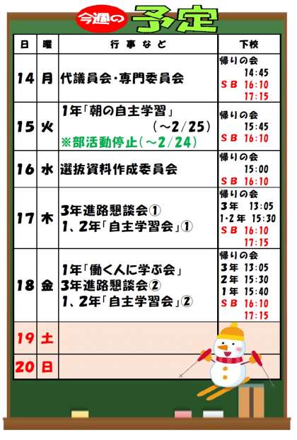 12/24( 水 ) 12月23日(火)2年生「学年集会」