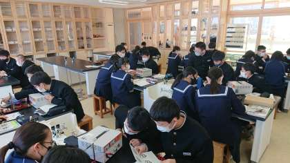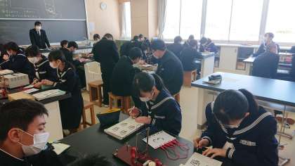 3月7日(月) 2年生「授業風景その2」 公開日 2022/03/07 更新日 2022/03/07 2年生 2年2組は理科の授業です。 電流・磁界・力の向きの関係を実験で確かめていました。実際にコイルが動く様子を見て、生徒は驚いていました。