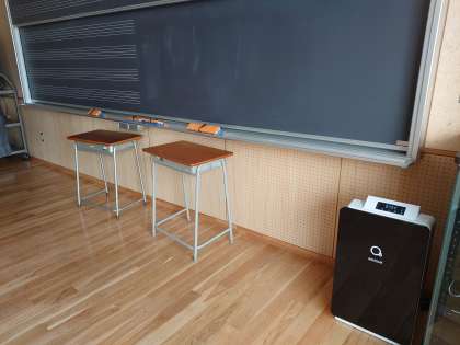 まずは飛沫の生じやすい音楽室に設置し、状況に応じて教室等に移動して使うことにします。